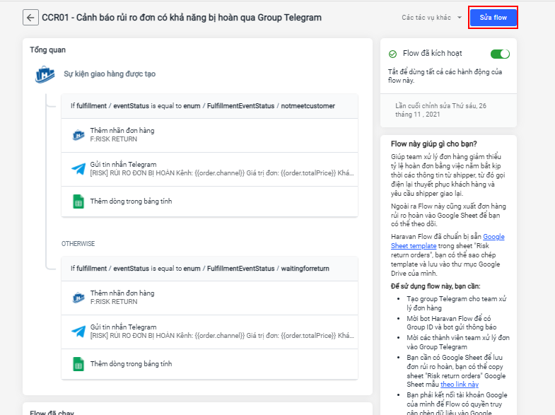 - Trong giao diện flow, bạn chọn Sửa Flow.