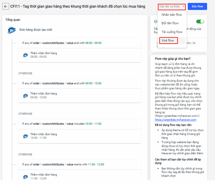 Haravan Flow CFI11 - Tag thời gian giao hàng theo khung thời gian khách đã chọn lúc mua hàng