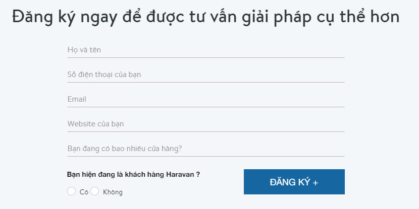 Cụ thể hơn thì bạn có thể quan sát lời kêu gọi hành động của website Haravan.com dưới đây: