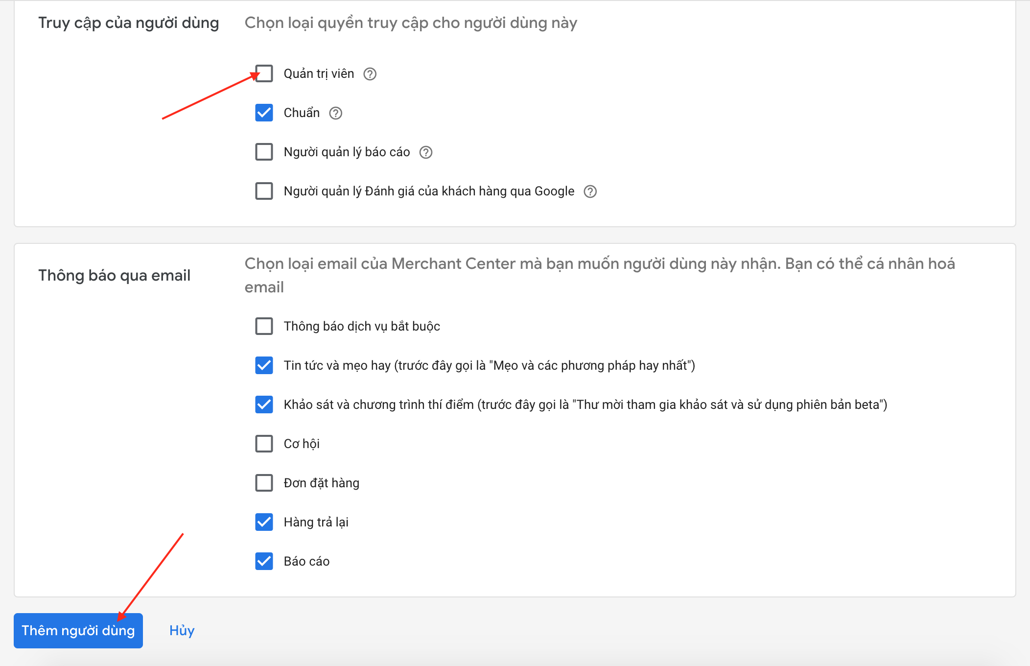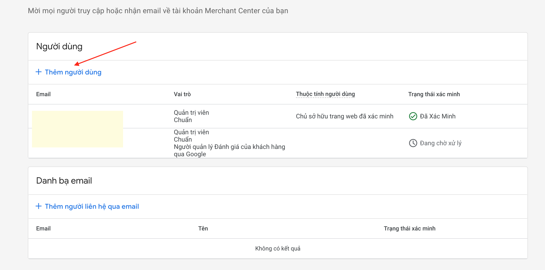 Bước 2:Mời mail mới vào tài khoản Merchant Center: