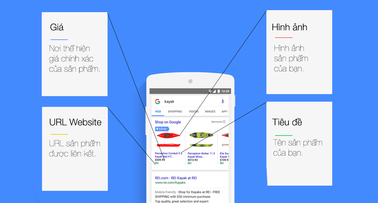 - Cấu trúc mẫu quảng cáo Google Shopping khi hiển thị với khách hàng