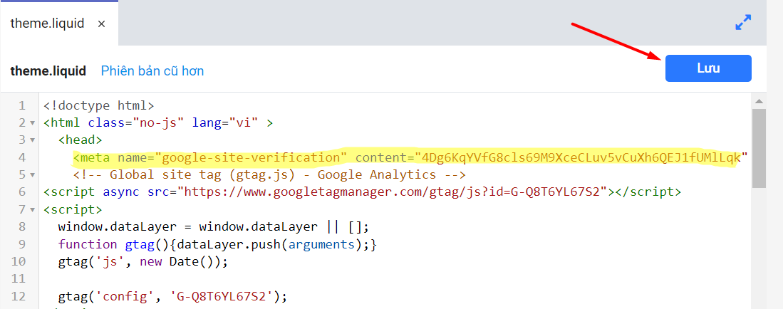 Bước 03: Chèn mã đã sao chép ở Bước 1 vào website: