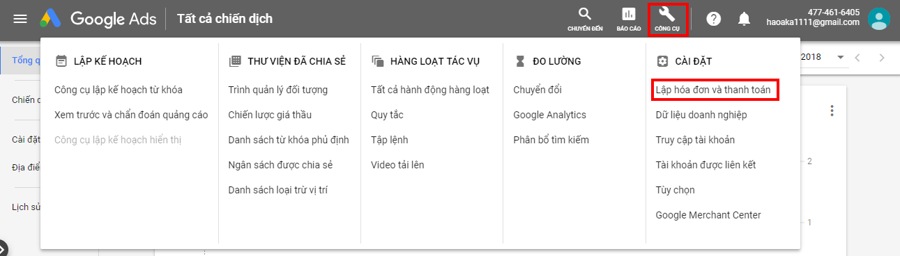 Hướng dẫn thiết lập thanh toán cho chiến dịch Google Ads