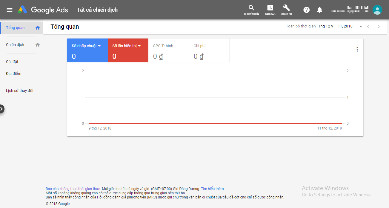 Đầu tiên, bạn cần truy cập vào link https://ads.google.com/home và đăng nhập bằng tài khoản email đã nhận được lời mời trước đó. Nếu đăng nhập thành công, bạn sẽ nhìn thấy một giao diện như sau: