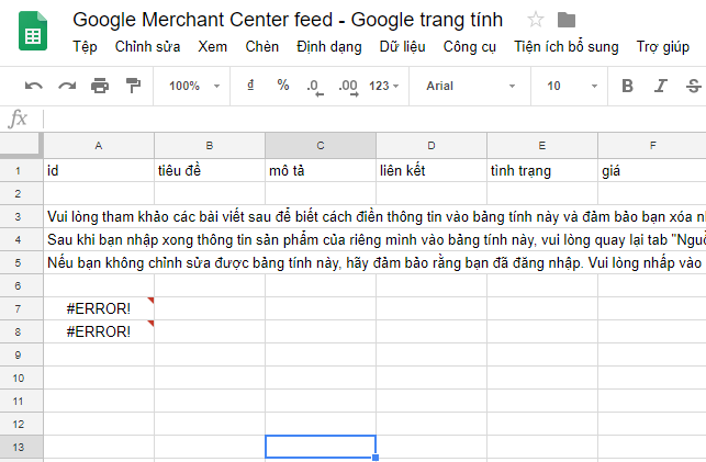 Cách đồng bộ thông tin sản phẩm lên Merchant Center thông qua Google Trang tính
