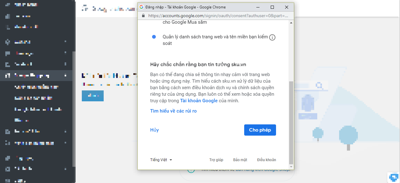 Tiếp theo, bạn cần nhấp "Cho phép" để hệ thống có thể liên kết tới tài khoản Google Merchant Center của bạn.
