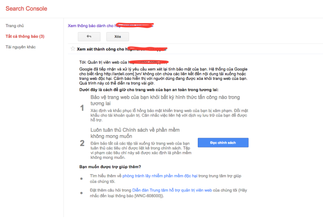 Xóa cảnh báo Website bị mã độc