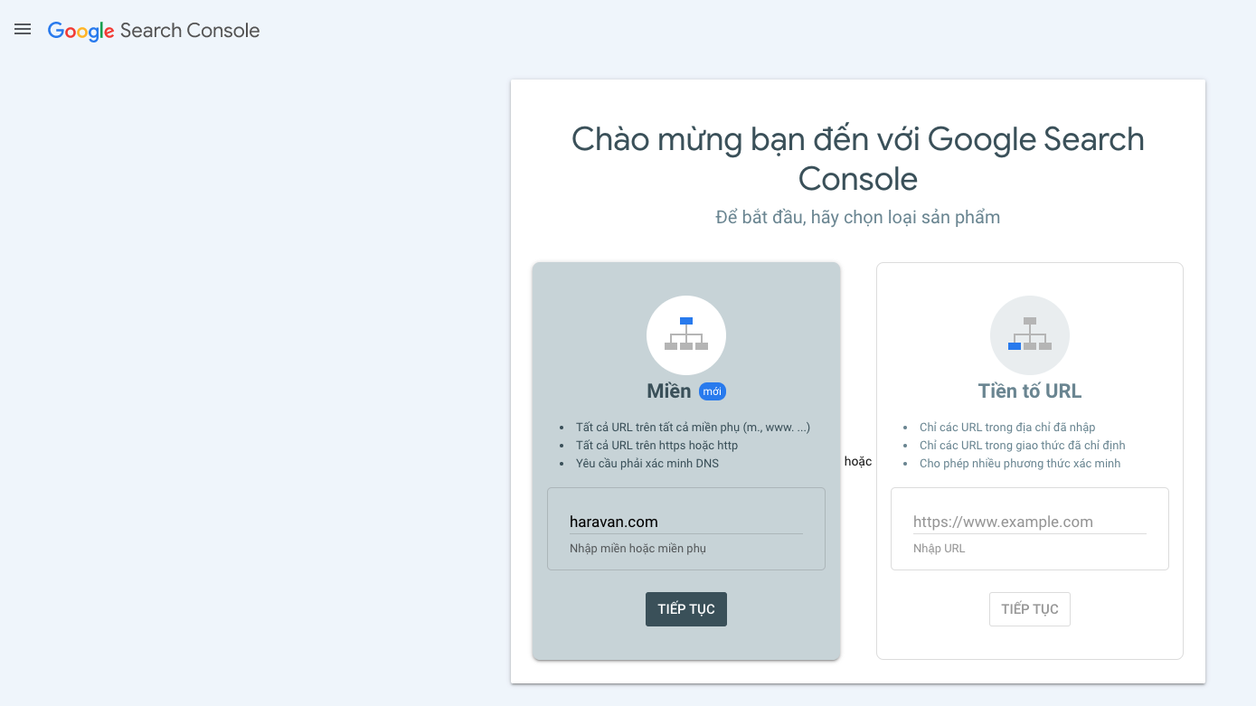 - Bước 2: Click Go to Search Console