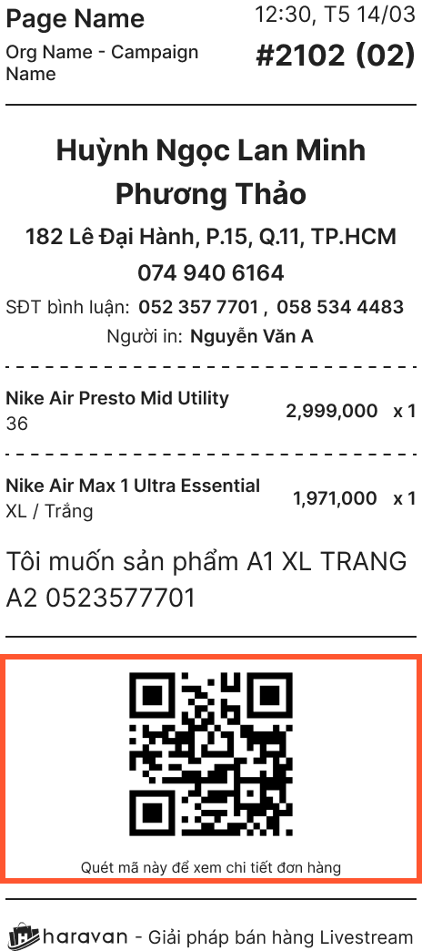 Sẽ thật tiện lợi khi bạn vừa có thể theo dõi được bình luận Livestream, vừa có thể trực tiếp in ra các phiếu bình luận hay khi tạo đơn hàng, bạn cũng có thể trực tiếp in vận đơn để dán trực tiếp vào đơn hàng. Với công cụ hỗ trợ kết nối máy in tại Harasocial Mobileđã được ra mắt với các thao tác cấu hình đơn giản, giúp đỡ các nhà bán hàng có thể dễ dàng in phiếu bình luận và vận đơn trực tiếp ở bất cứ nơi đâu hoặc thời điểm nào.