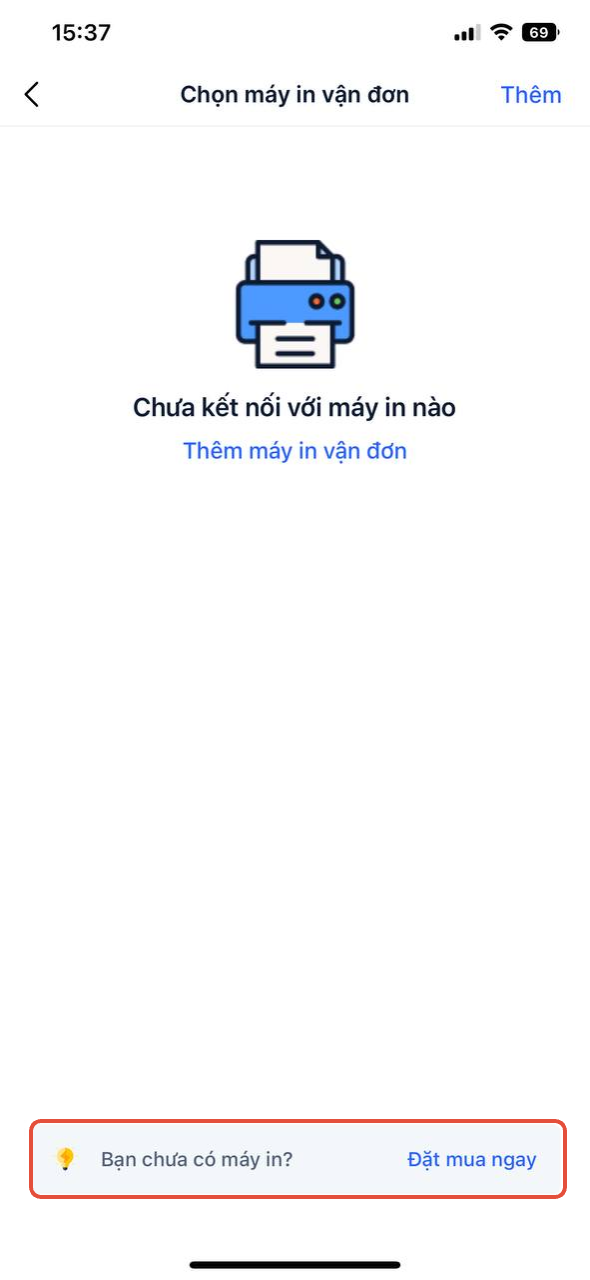 Đầu tiên, bạn cần truy cập vào mục Tài khoản**→ Cài đặt máy in**→ Chọn máy in vận đơn**→ Thêm máy in vận đơn.**