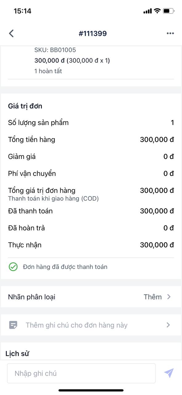 - Với đơn hàng đã thanh toán và đã giao hàng, nhà bán hàng thực hiện nhập số lượng trả hàng và nhập số tiền hoàn trả.