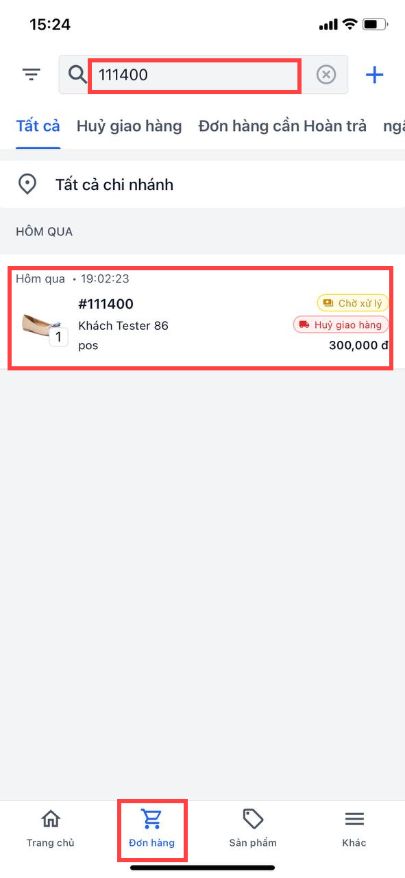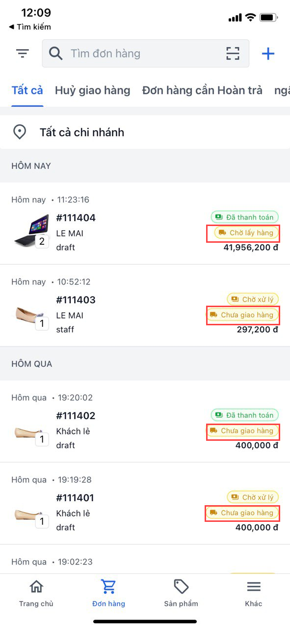 - Tại mục đơn hàng, chọn đơn hàng có trạng thái Chưa giao hàng. Đơn chưa giao hàng sẽ có trạng thái