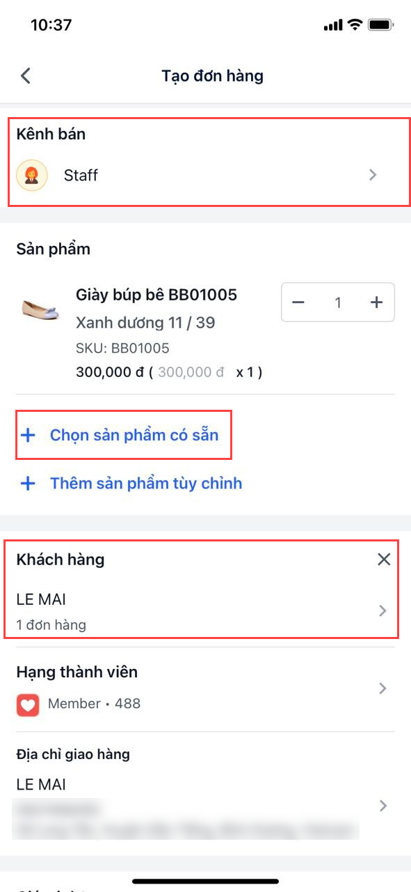 - Tại màn hình Tạo đơn hàng, bạn thực hiện chọn