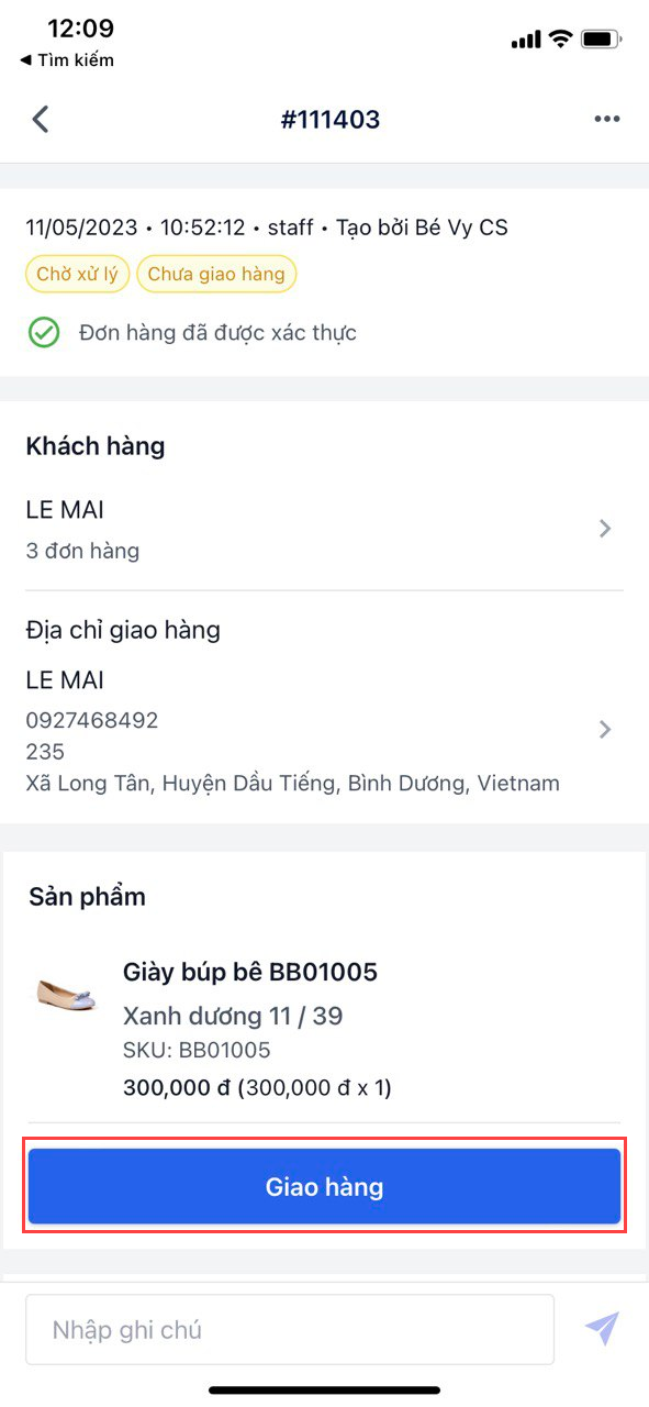 Chọn Giao hàng để tạo đơn vận chuyển. Các trạng thái vận chuyển sẽ được tự động cập nhật từ phía nhà vận chuyển