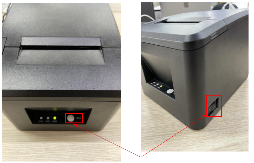 3. Vừa Ấn Giữ nút FEED và vừa ấn mở nguồn máy in.