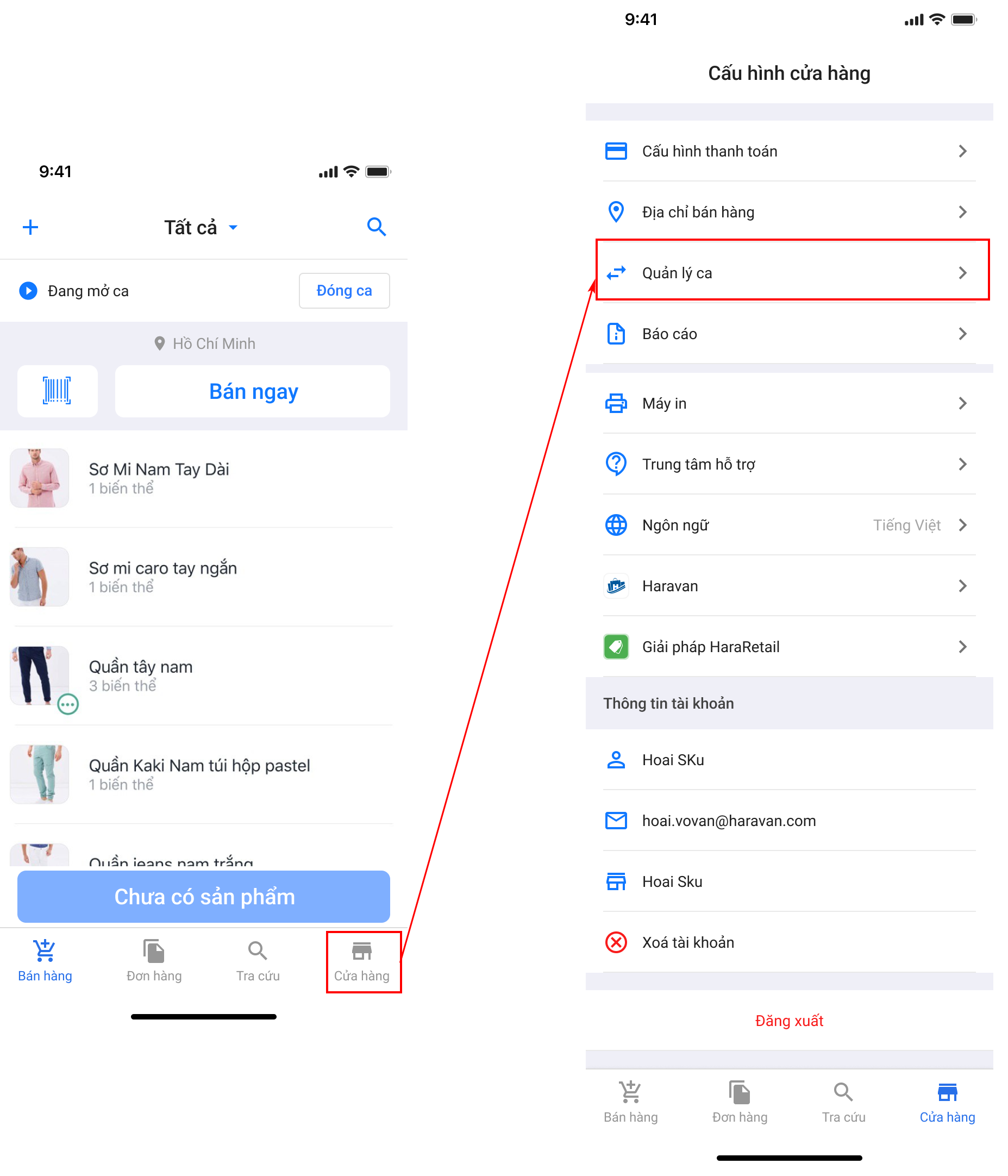 Quản lý ca trên ứng dụng Haravan POS
