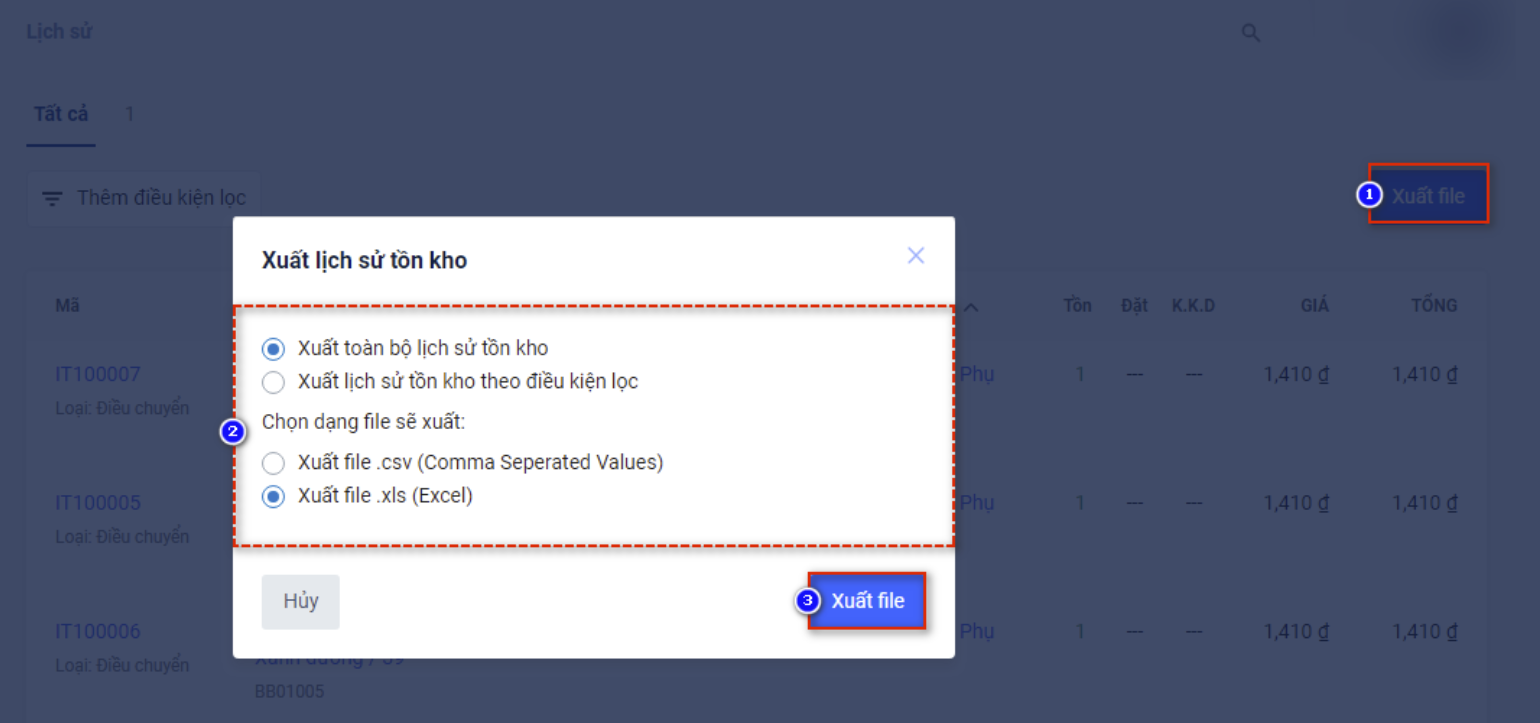 2. Thực hiện các điều kiện lọc. Chọn điều kiện xuất và định dạng file, chọn Xuất file.