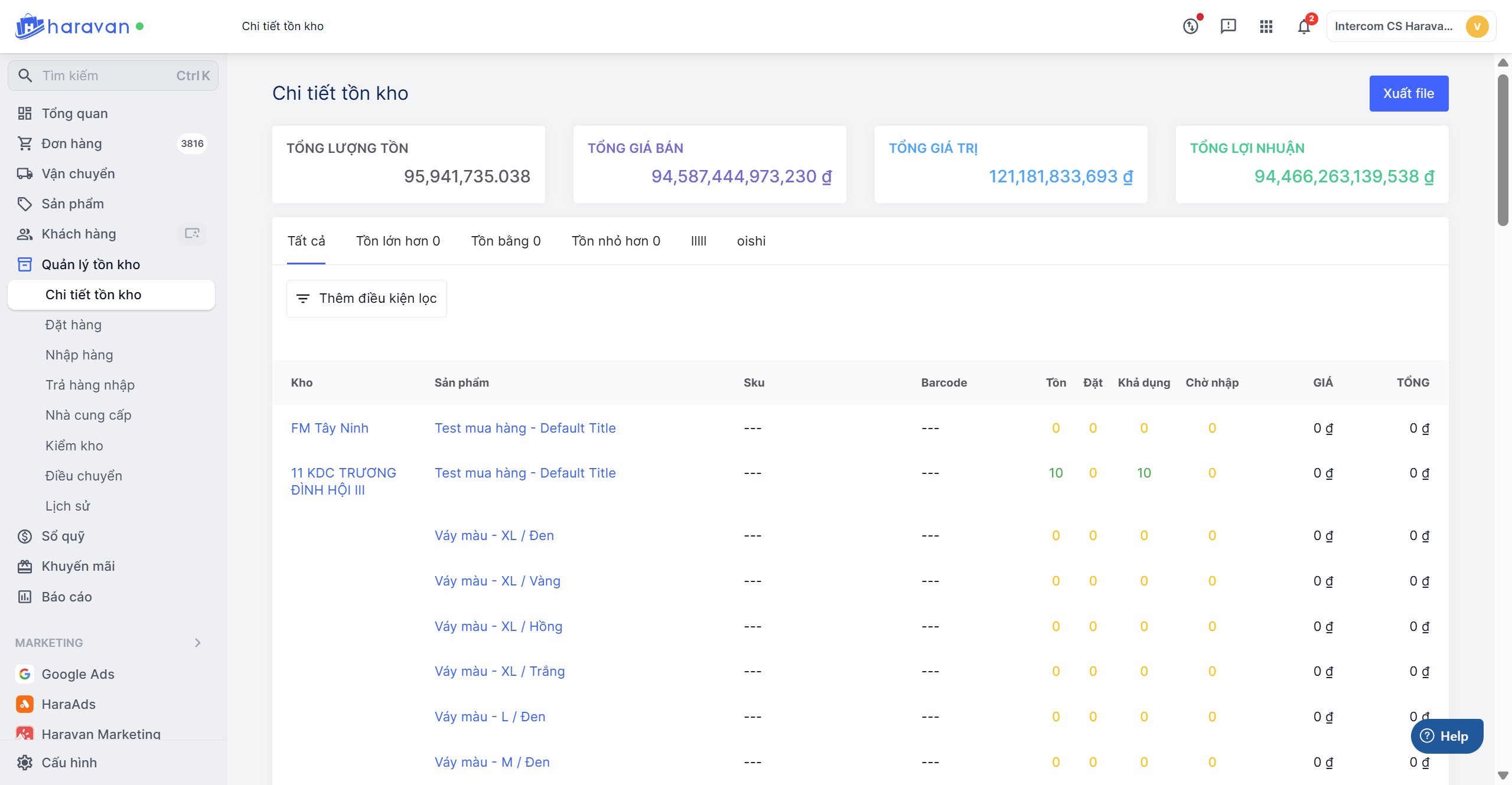 - Trong giao diện admin Haravan, chọn Quản lý tồn kho > Chọn Chi tiết tồn kho.