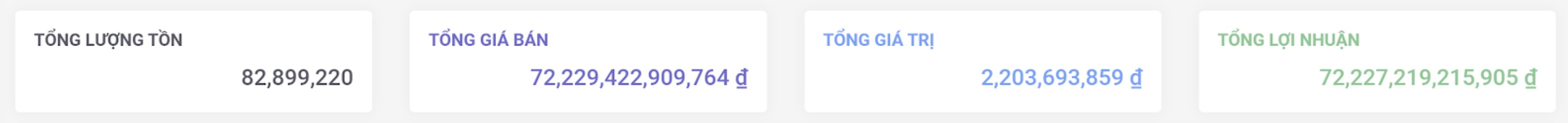 | Tổng giá bán | Giá trị này bằng Tổng của tích lượng tồn nhân với giá bán của từng sản phẩm |