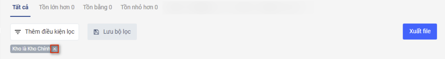 - Để xóa điều kiện lọc, nhấn dấu “X” trên thanh hiển thị.