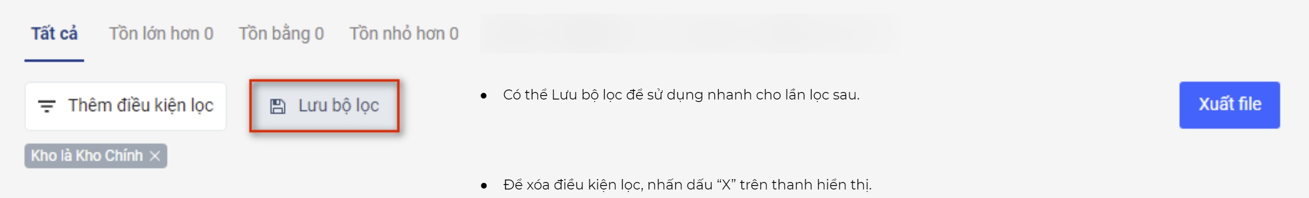 Trong Chi tiết tồn kho, người bán có thể xem ngay tình trạng thực tế (real-time) của kho hàng. Vì thế, lọc tồn kho giúp người bán lọc nhanh những thông tin của sản phẩm & kho hàng cần biết.