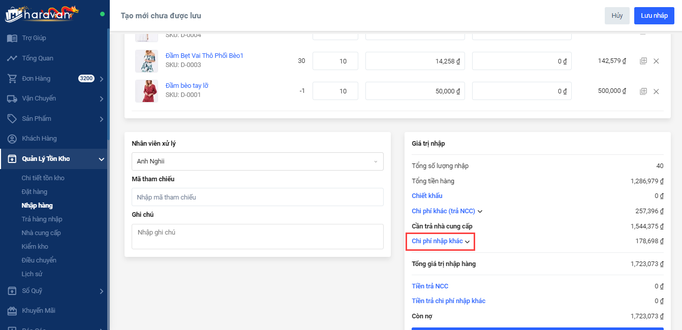 Xem thêm hướng dẫn chi tiết về quản lý các chi phí nhập hàng khác tại đây