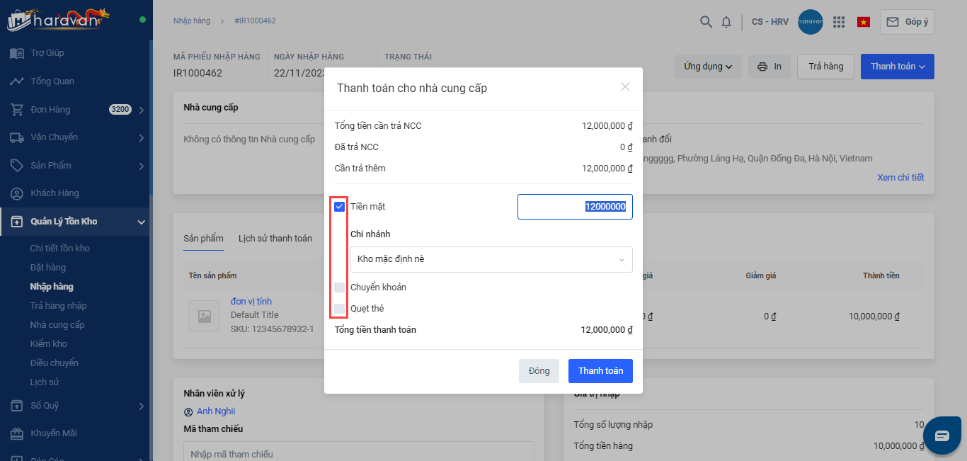 - Thanh toán phiếu nhập hàng