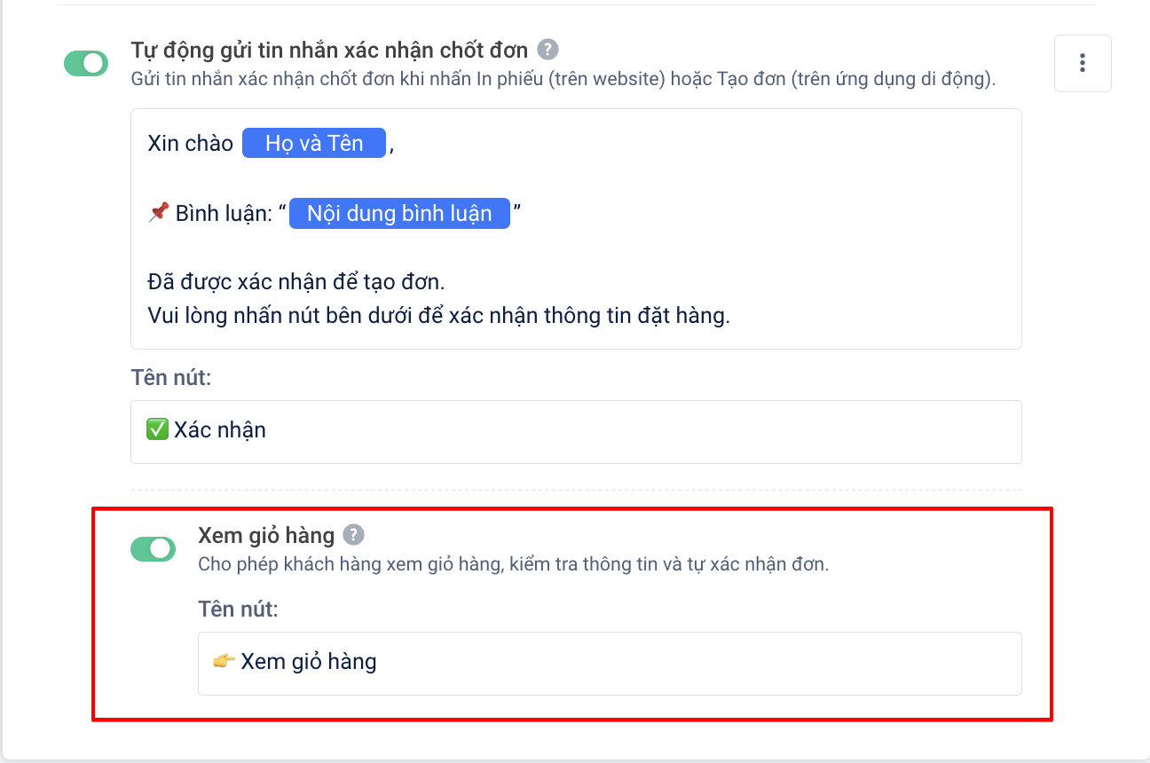 - Cho phép bật nút **[Xem giỏ hàng]**để khách hàng tự thao tác thanh toán nếu có bình luận đúng cú pháp thêm sản phẩm vào giỏ hàng