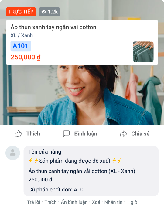 - 1 bình luận có thể bấm in lại nhiều lần và vẫn gửi tiếp tin nhắn xác nhận chốt đơn, nhưng nội dung bình luận sẽ không nhân bản lên.