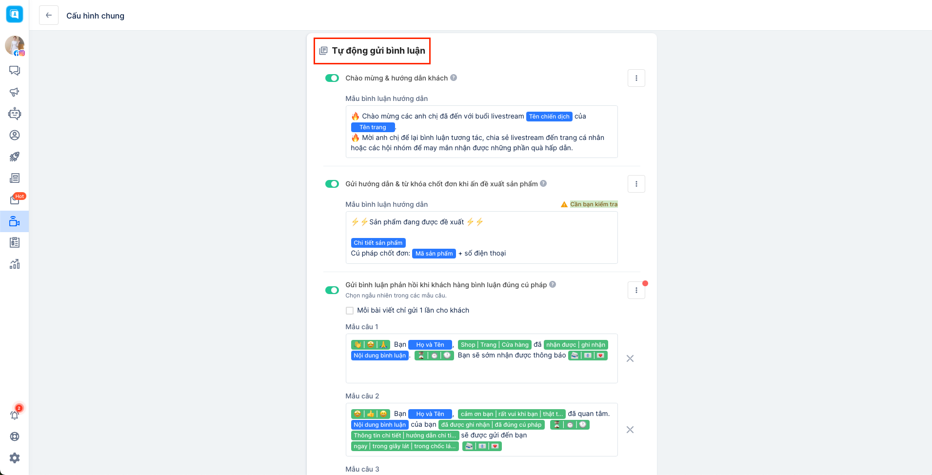 3. Cài đặt bình luận tự động
