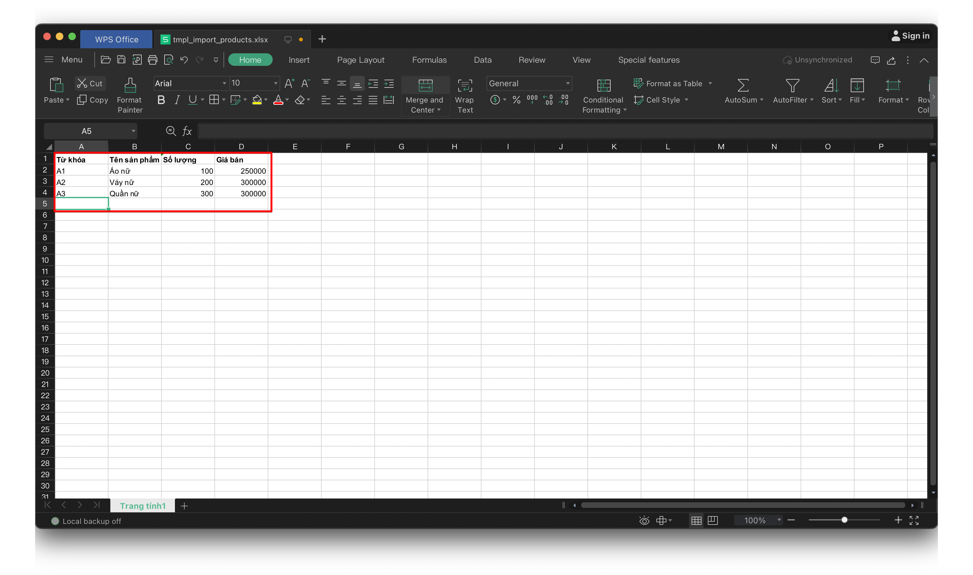 - Không được thêm, xoá, chỉnh sửa các cột trong dữ liệu mẫu tải về