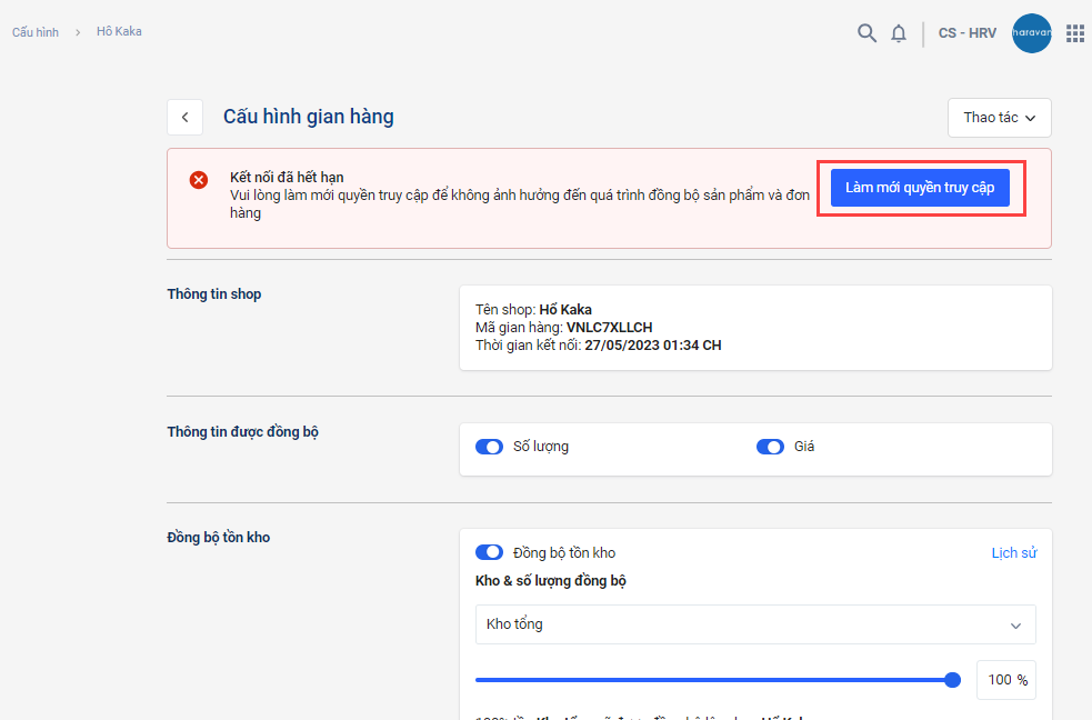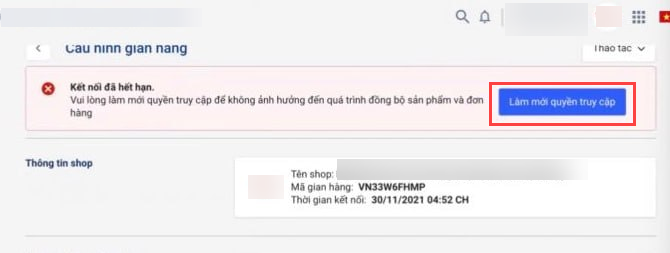 - Tại thông báo Kết nối hết hạn, bạn chọn Làm mới quyền truy cập