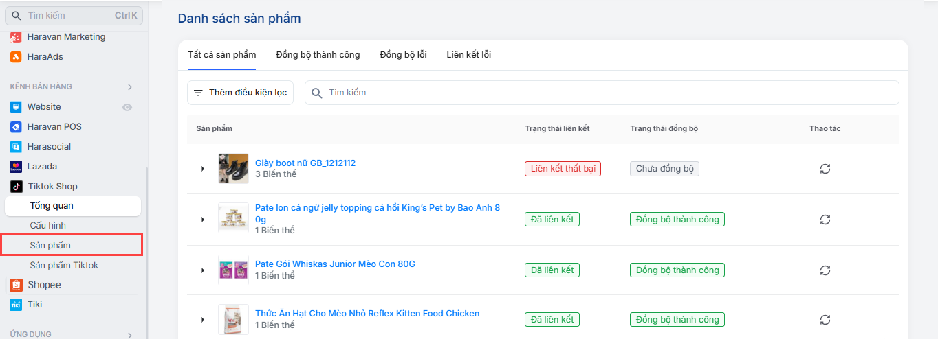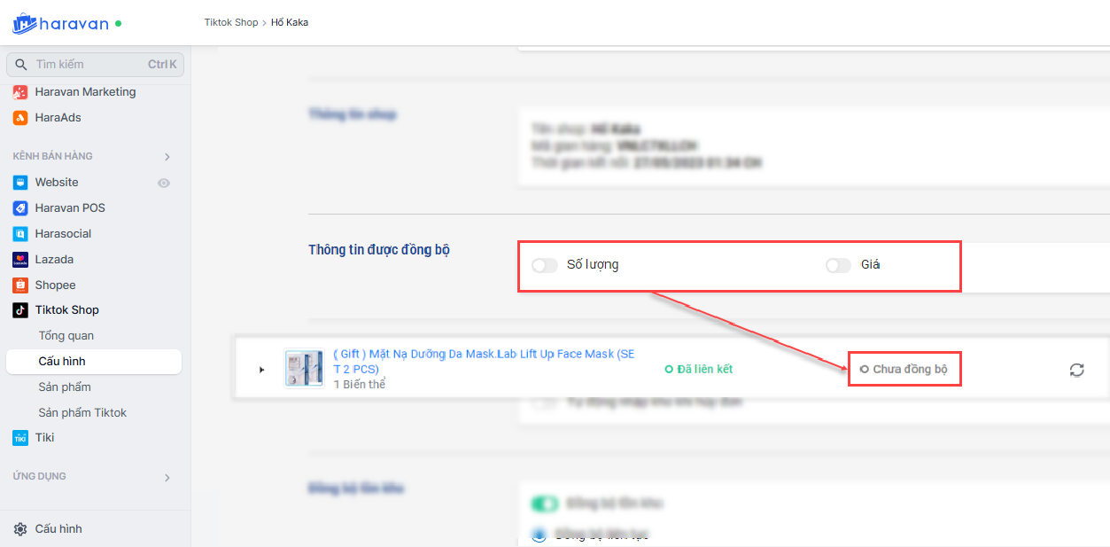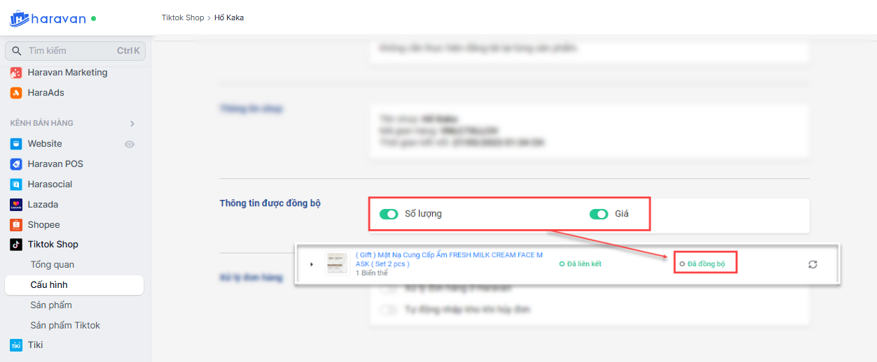 - Kiểm tra kết quả liên kết và đồng bộ sản phẩm Haravan và Tiktok Shop