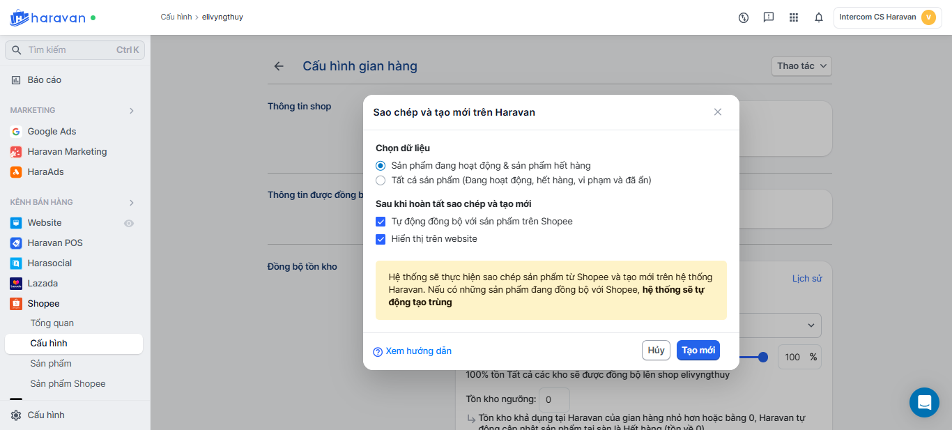 Hướng dẫn sao chép sản phẩm từ Shopee về Haravan