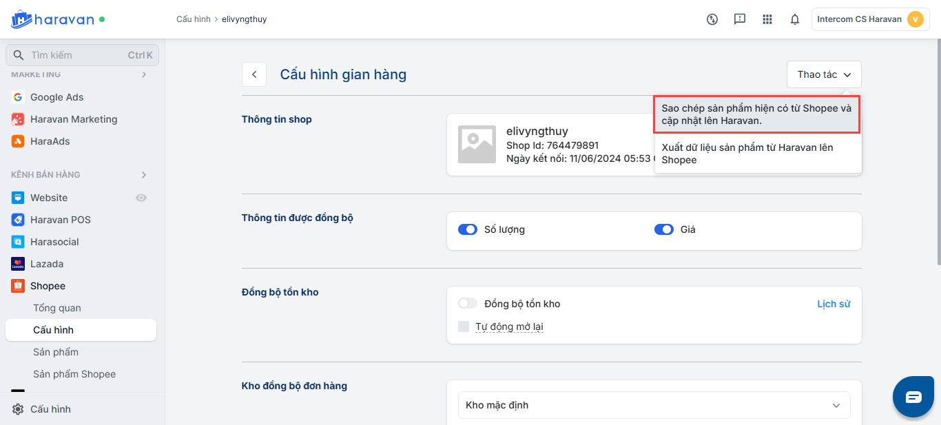 - Công cụ sao chép thông tin từ sàn về Haravan