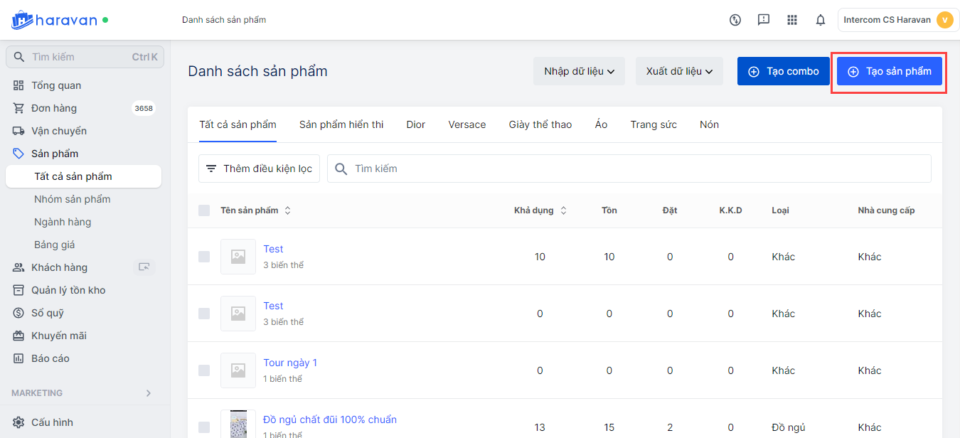 Trong phần admin Haravan, vào mục Sản phẩm > Chọn Tất cả sản phẩm.