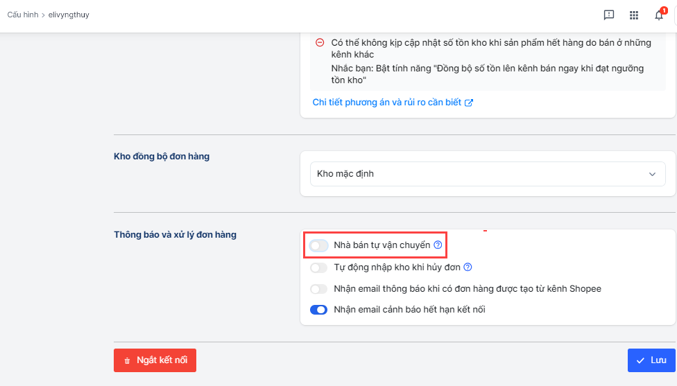 - Nếu không kích hoạt, bạn sẽ**xử lý đơn hàng trực tiếp trên hệ thống sàn**vàtrạng thái đơn hàng sẽ được đồng bộ về Haravan**.**