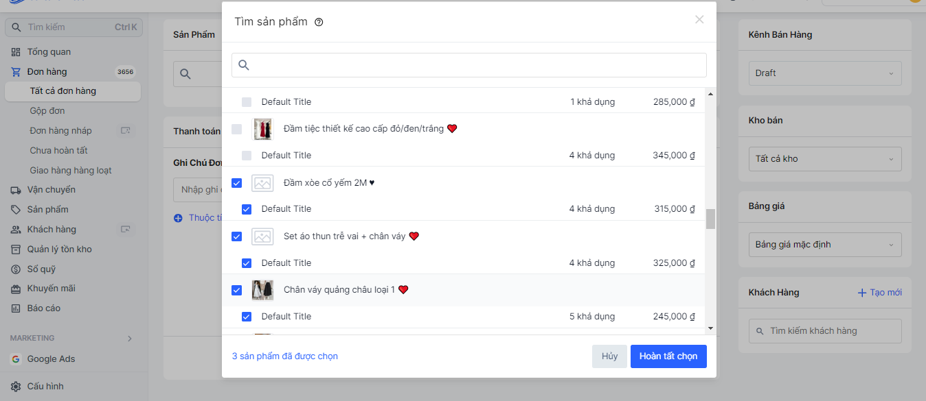Bước 3: Tìm kiếm và thêm sản phẩm vào đơn hàng.