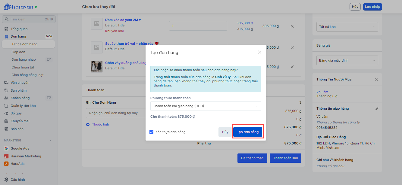 Bước 9 Chọn Tạo đơn hàng để hoàn tất