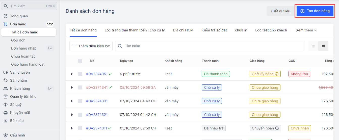 Bước 1: Trong menu Tất cả đơn hàng, bạn chọn Tạo đơn hàng mới.