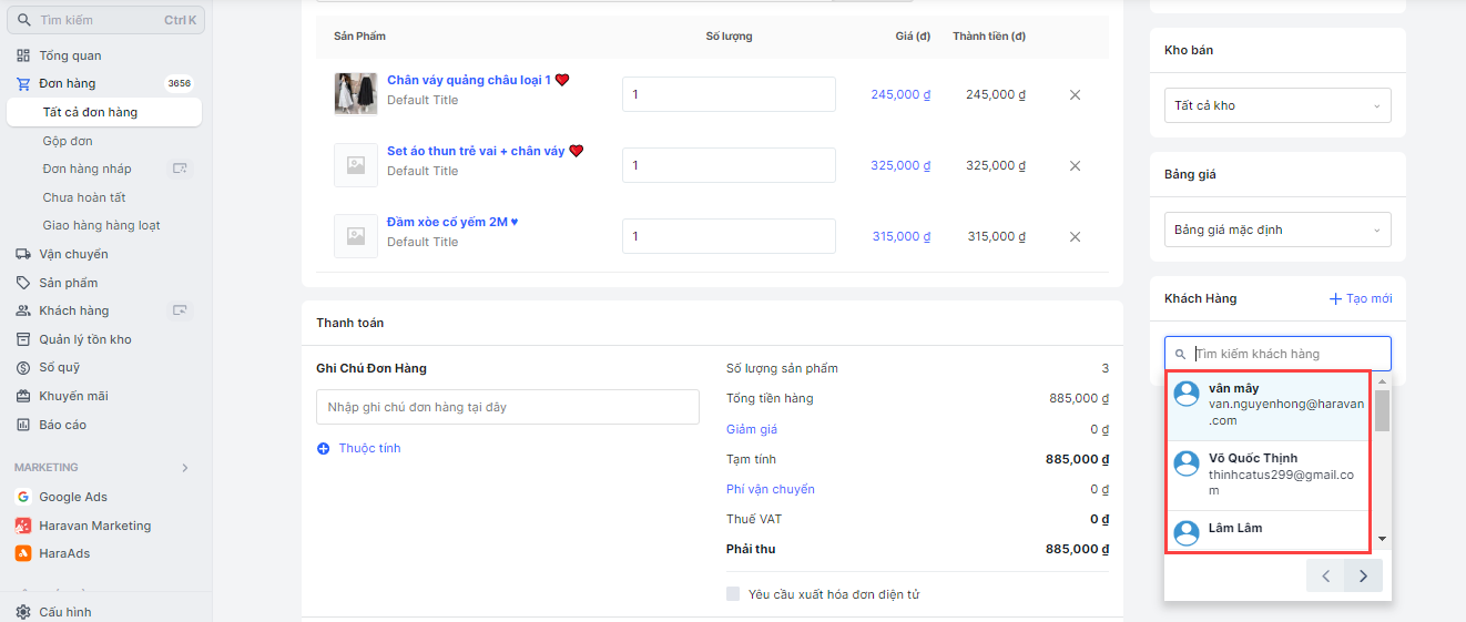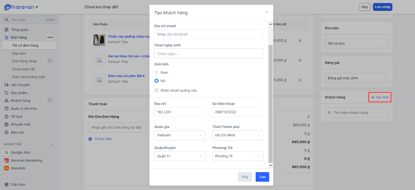 Tạo đơn hàng mới trên trang quản trị MyHaravan
