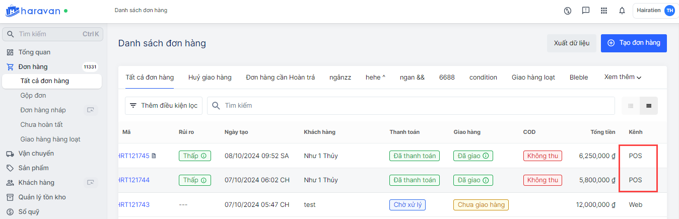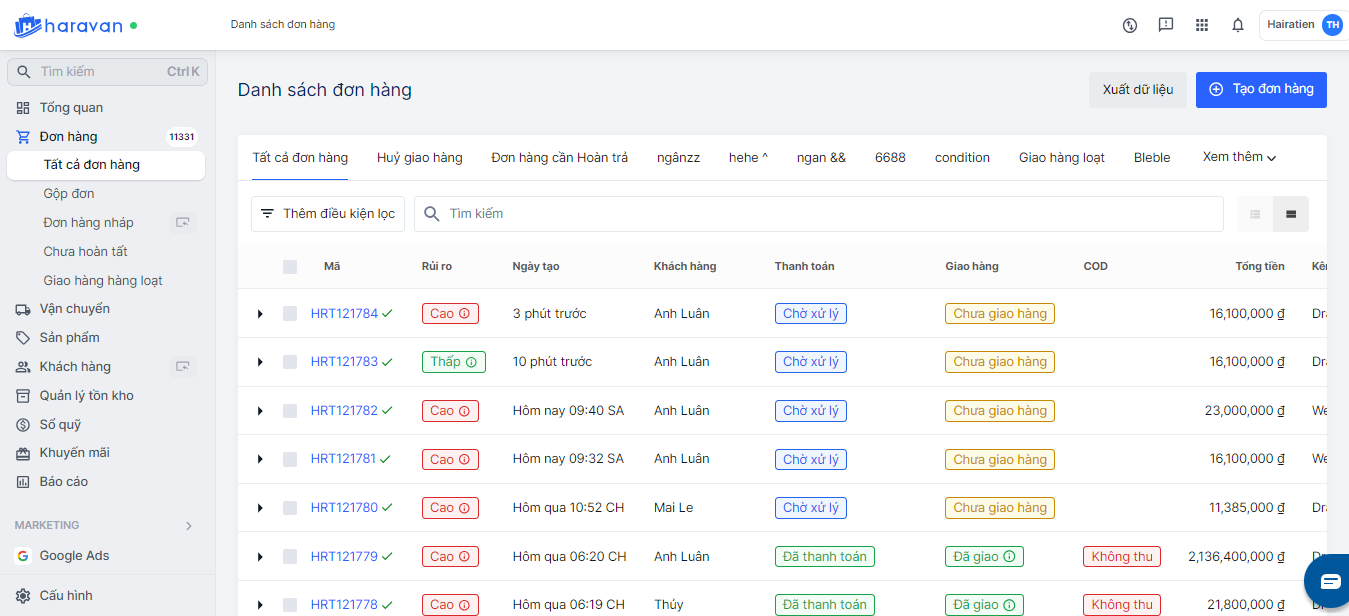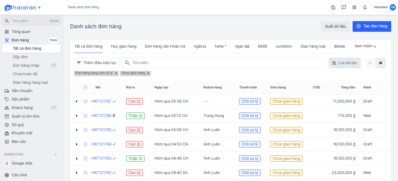 Hiểu về chức năng đơn hàng của hệ thống Haravan sẽ giúp Nhà bán hàng vận hành việc kinh doanh tốt hơn. Sau khi Khách mua hàng đặt hàng trên bất kì kênh bán hàng nào, đơn hàng đó sẽ hiển thị ở mục Đơn hàng trong khu vực quản trị.