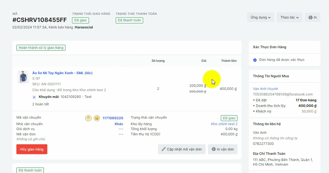Với đơn đã tạo vận đơn, chỉ có thể hủy nếu nhà vận chuyển chấp nhận hủy phiếu. Nếu không, bạn cần liên hệ trực tiếp với đơn vị vận chuyển.