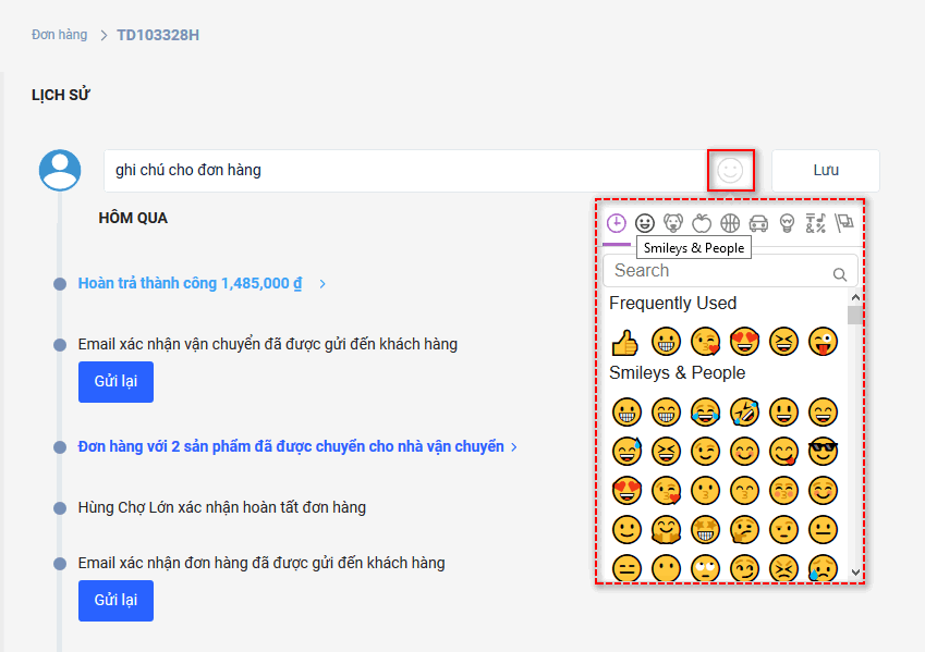 Thêm ghi chú cho lịch sử đơn hàng