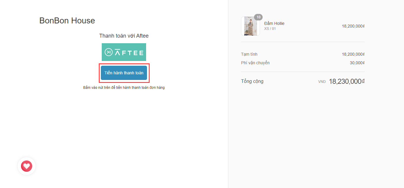 Tiếp tục hoàn tất các bước thanh toán với AFTEE