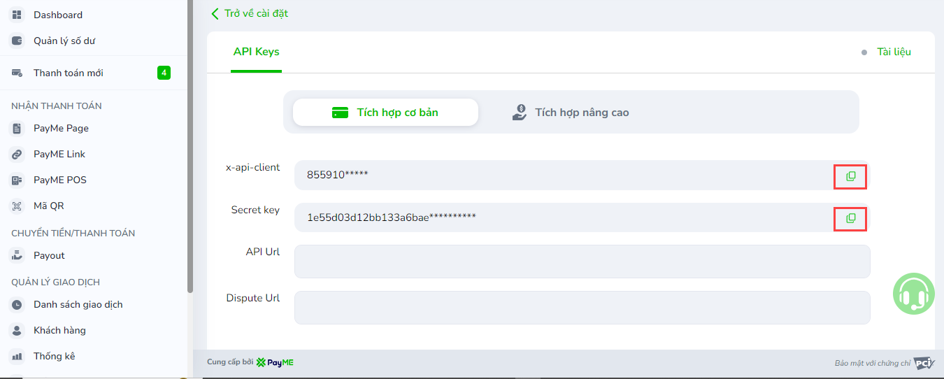 Sau khi đăng ký hoàn tất, Nhà bán hàng đăng nhập vào trang quản trị PayME để lấy thông tin kết nối.