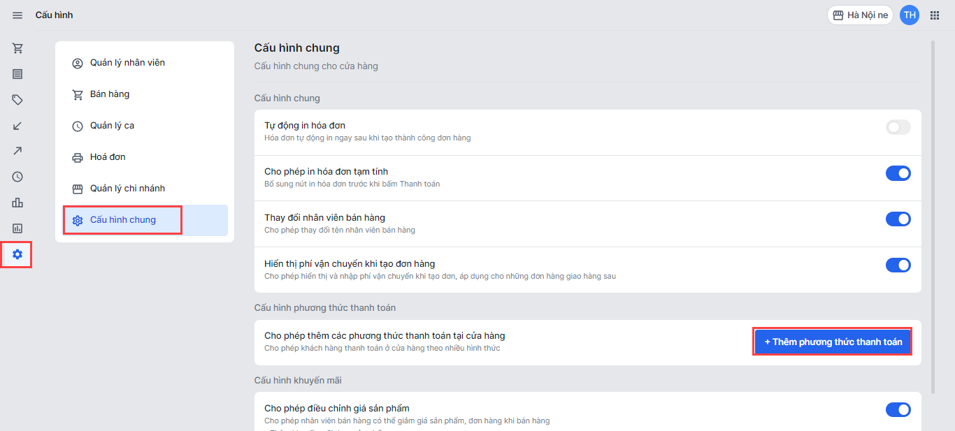- Nhà bán chọn Cấu hình, chọn Cấu hình chung và chọn Thêm phương thức thanh toán.