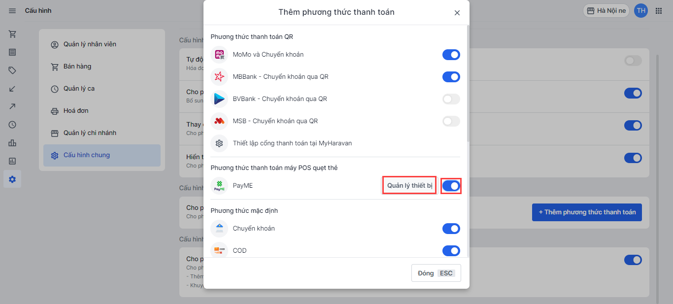 Hướng dẫn thiết lập phương thức PayME trên Haravan POS