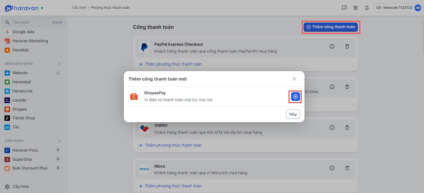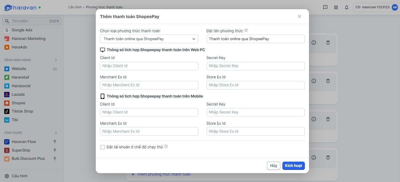 Đăng ký tích hợp phương thức thanh toán ShopeePay vào Haravan