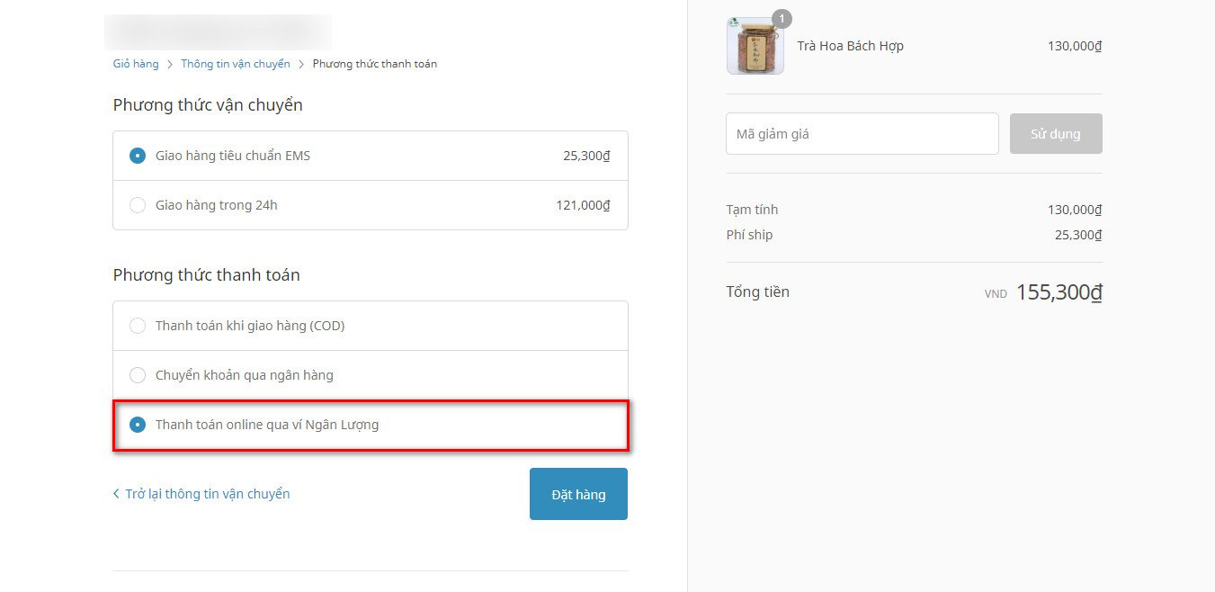 - Lựa chọn thanh toán bằng Ngân Lượng